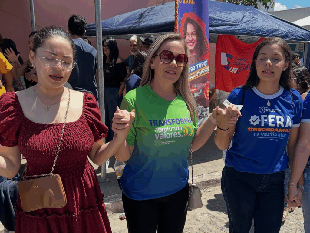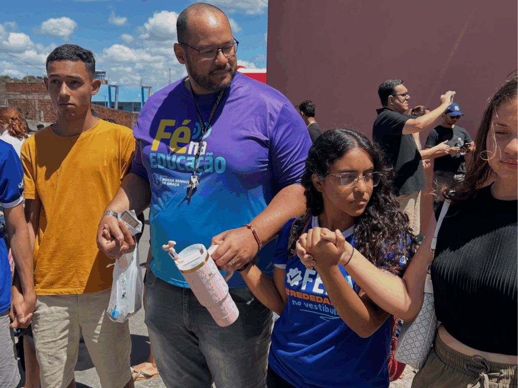 No segundo dia de provas, a equipe de direção, as religiosas e os educadores acolheram os estudantes com palavras de incentivo e apoio antes do início do exame.